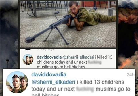 یکی از تکتیراندازهای رژیم صهیونیستی با انتشار تصویر خود، به کشتن ۱۳ کودک فلسطینی در طول یک روز افتخار کرد.